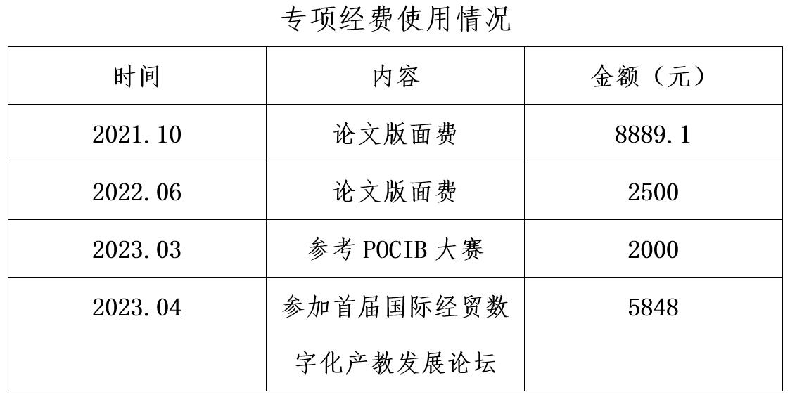 在学科建设过程中,本学科团队高度重视专项经费的管理与使用,确保专项经费的使用符合规定,并及时进行审计和报告。专项经费主要用于论文版面费、参加学术会议、组织学生参加学科竞赛等方面。严格按照计划进行经费使用,确保了经费的合理分配和有效利用。