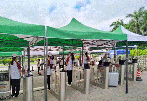 为确保学院秋季学期开学平稳有序,学院在保证师生健康安全的基础上对迎新工作进行周密安排和部署。9月1日,在校领导和老师们指导下,专升本新生入学报道正式开始。在校门口处,志愿者与安保人员手持测温仪检查体温、逐一查验健康码与核酸证明及引导各新生与陪同人士有序进入校园。入门两旁的志愿者也在热情地迎接并指引新生们,为新生们保驾护航。