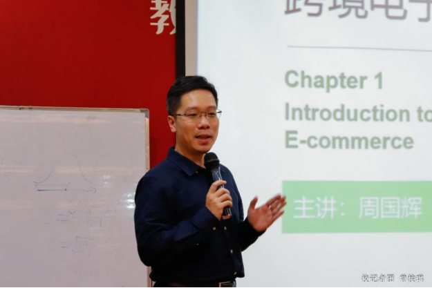 围绕跨境电子商务英语的课程内容,周国辉老师以视频导入课堂,采用双语教学模式,通过小组展示的方式与同学进行互动,加深同学对课堂知识的记忆和理解,提升课堂活跃度,并制定阶段性任务,保障学生学习的连续性,获得现场评委的一致好评。