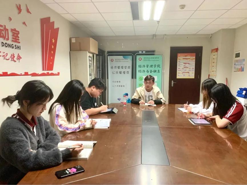 追风赶月莫停留,平芜尽处是春山。为贯彻学习党的二十大精神,进一步推进新学期学院学生工作落实落细,不断加强团学组织建设,切实提升学院学生干部的综合素质,3月7日晚,经济贸易学院团委学生会于行政楼309召开团学骨干会议,会议由团委书记曾庆威老师主持,团学常委及团学各部门负责人参加此次会议。