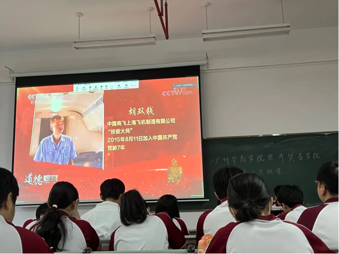 为了深入学习贯彻党的二十大精神,引领同学们传承中华优秀传统文化,汲取奋进力量,经济贸易学院于5月9日17:45分在增城校区励志楼C305和四会校区8号楼305,同时开展了广州华商学院经济贸易学院青马班第四次授课,授课内容为组织同学们观看视频《榜样的力量》,以同学们喜闻乐见的方式奏响新时代光影颂歌。