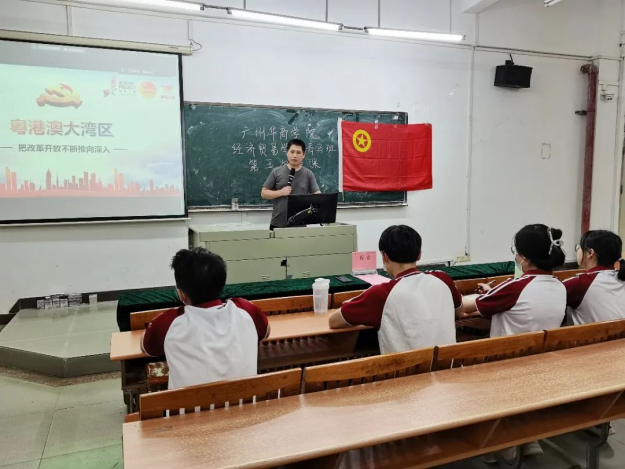粤港澳大湾区是我国开放程度最高、经济活力最强的区域之一,在国家发展大局中具有重要战略地位。为深入学习贯彻习近平新时代中国特色社会主义思想和党的二十大精神,落实习近平总书记关于改革开放的重要讲话精神,经济贸易学院于2023年5月16日18:45在增城校区励志楼C303和四会校区8号楼305,同步开展广州华商学院经济贸易学院二期青马班第五次授课,本次授课由经济贸易学院院长助理石立老师主讲。