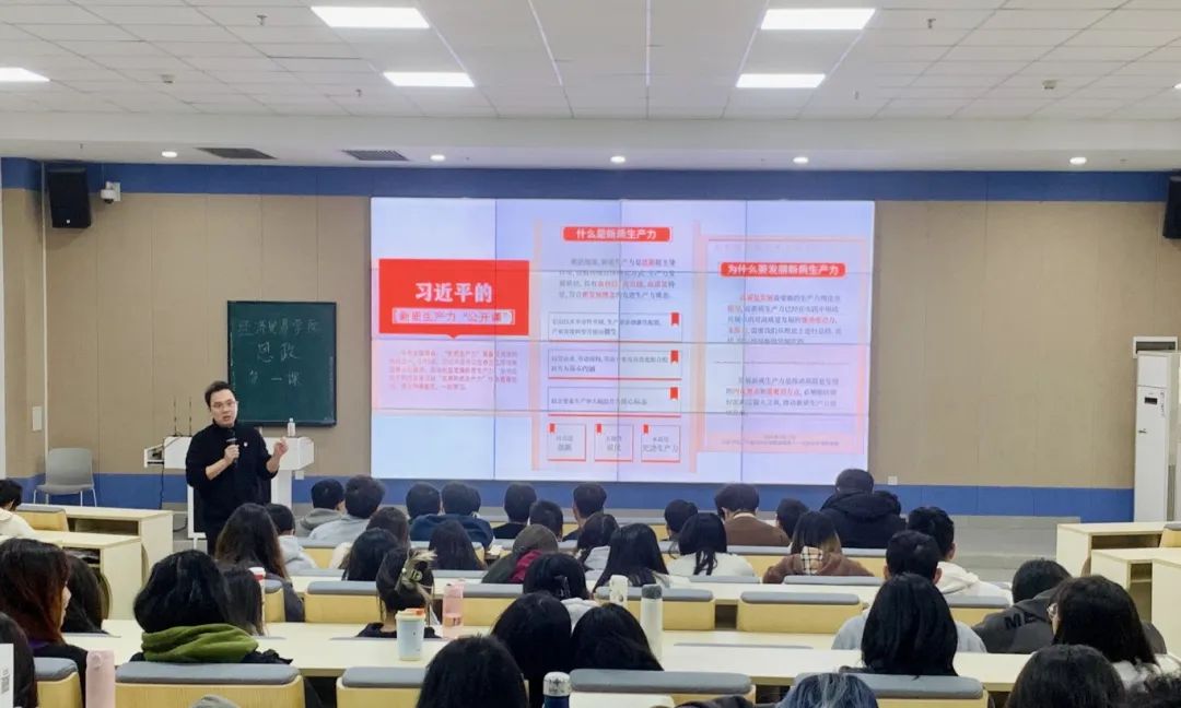 2024年3月5日,经济贸易学院李广明院长在广州校区励志楼C402为经济贸易学院2021级学生讲授以“踔厉奋发,学好本领,积极投身高质量发展的广东实践”为主题的思政第一课。首先,李广明院长以“人勤春来早”开篇,带领同学们学习全省高质量发展大会相关内容,引导同学们学习领会“以高质量发展推进中国式现代化”的深刻内涵。生产力是社会发展的最终决定力量,推进现代化建设最重要的是发展高度发达的生产力。习近平总书记强调发展新质生产力是推动高质量发展的内在要求和重要着力点。新质生产力的特点是创新,关键在质优,本质是先进生产力。