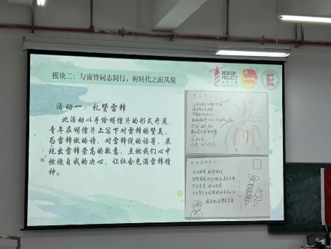 模块二:“与雷锋同志同行,树时代之新风貌”,该模块以个人为单位,举行两场文艺活动。此活动让同学们在活动中增强对雷锋精神的认识,传承弘扬新时代雷锋精神,书写新时代雷锋故事。