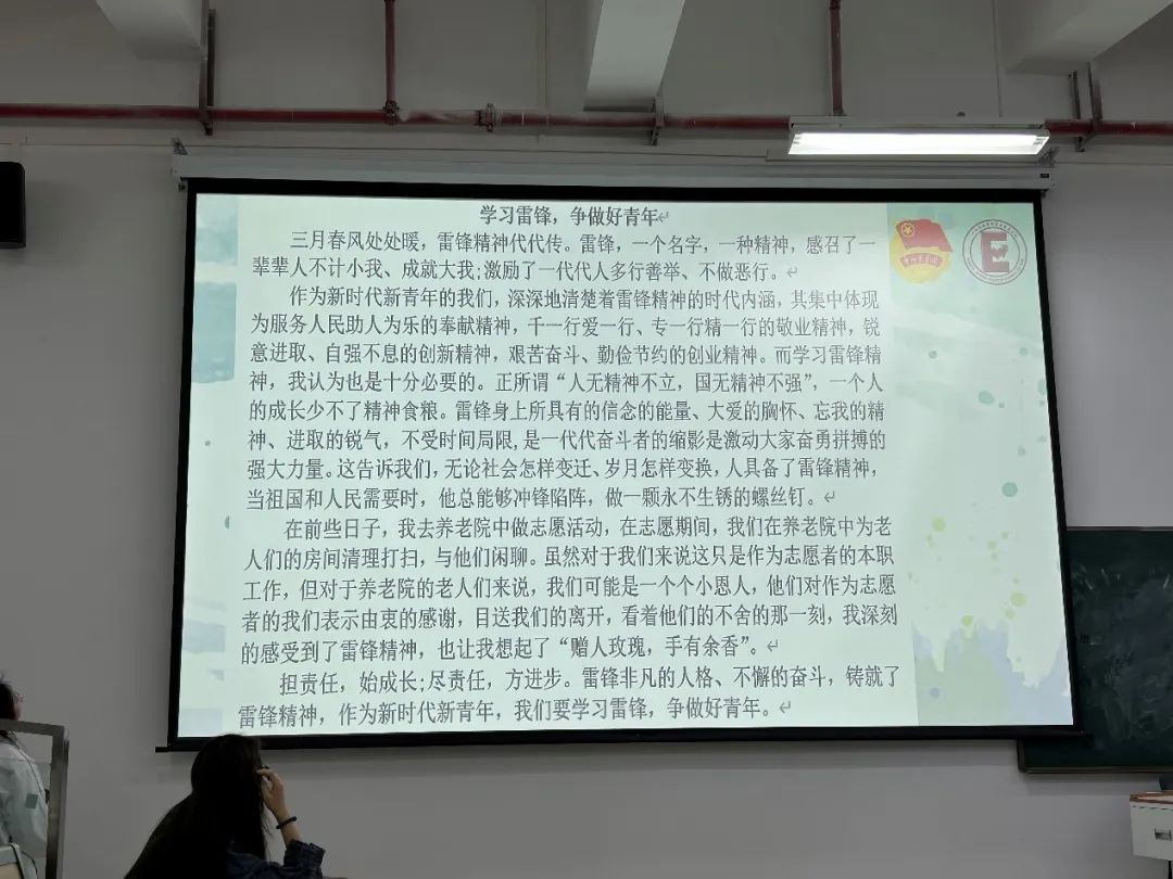 为此,经济贸易学院团委组织部于2024年3月22日19:00在肇庆校区16号楼212室举行了以“弘扬雷锋精神——让青春在奉献中绽放”为主题的三月团组织生活总结大会。