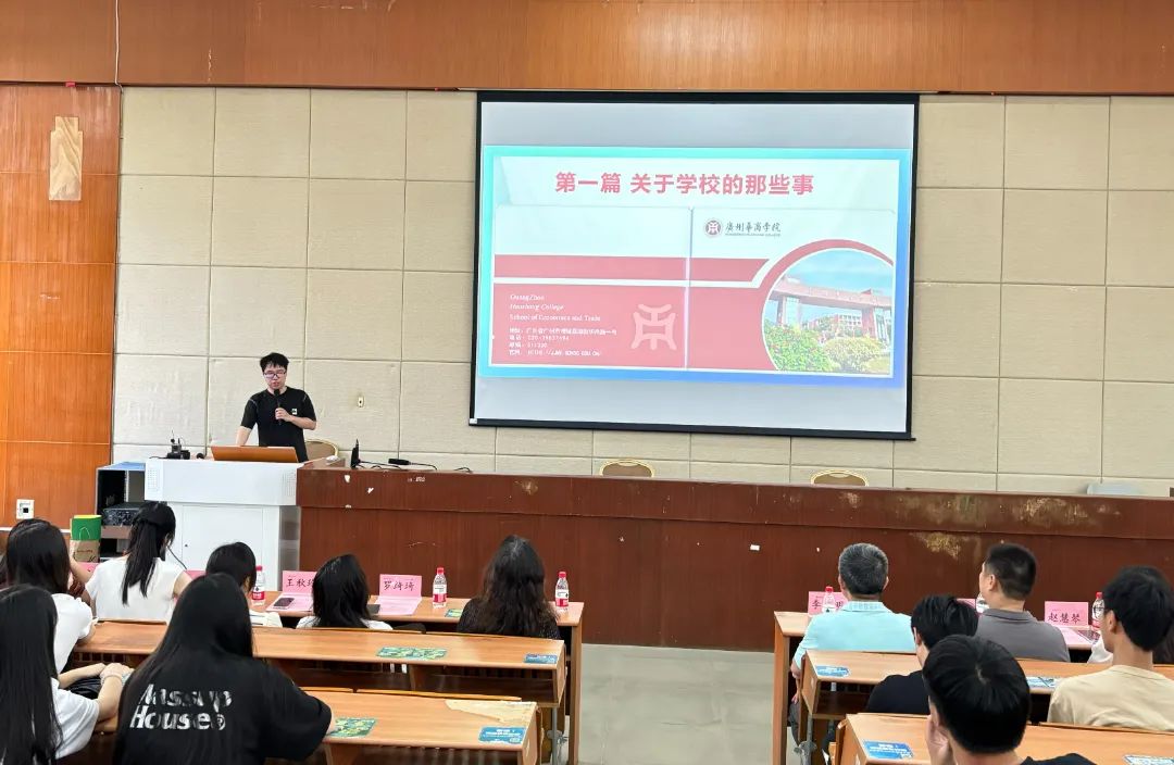 国际商学系主任罗衡军老师对广州华商学院地理位置、校园环境、住宿环境、学习环境、学校食堂、学校运动场及其他校内设施等进行了详细的介绍,并从学院层面介绍了学院专业结构、师资力量、科教研成果等,以及从国际商务专业层面介绍了专业师资、课程体系、就业升学及专业特色等。