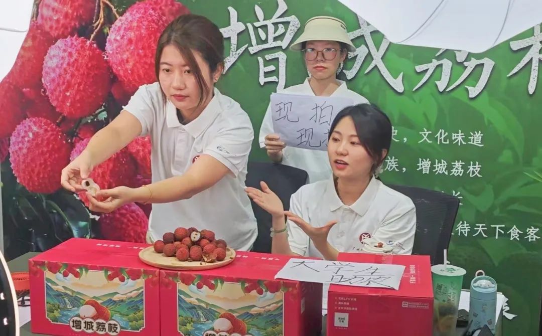 直播当日下午,经贸e起奋进队创新性地开展了直播带货活动。他们化身为主播,详细介绍仙进奉、桂味荔枝的种植环境、生产过程、品质特点以及营养价值,通过互问互答等方式增加直播的的趣味性和互动性。此次直播带货活动不仅吸引了大量观众观看和参与,还成功为仙进奉、桂味荔枝打开了新的销售渠道,助力农产品实现“种得好”到“卖得好”的转变。