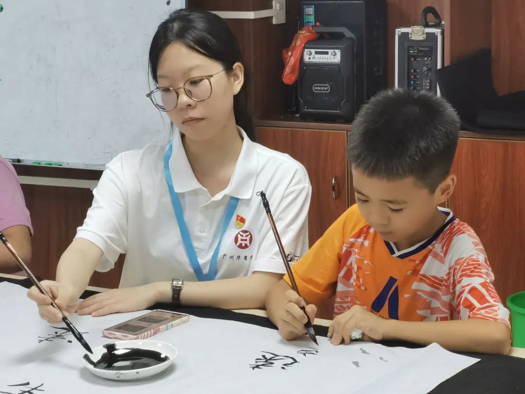 近日,广州华商学院经贸e起奋进队在新世界社区迎来了暑假社会实践活动的又一精彩篇章,本次活动围绕“挥毫泼墨送知识,环保手工创绿意”这一主题展开,旨在共同推进社区公共服务水平,为社区高质量发展贡献青春力量。