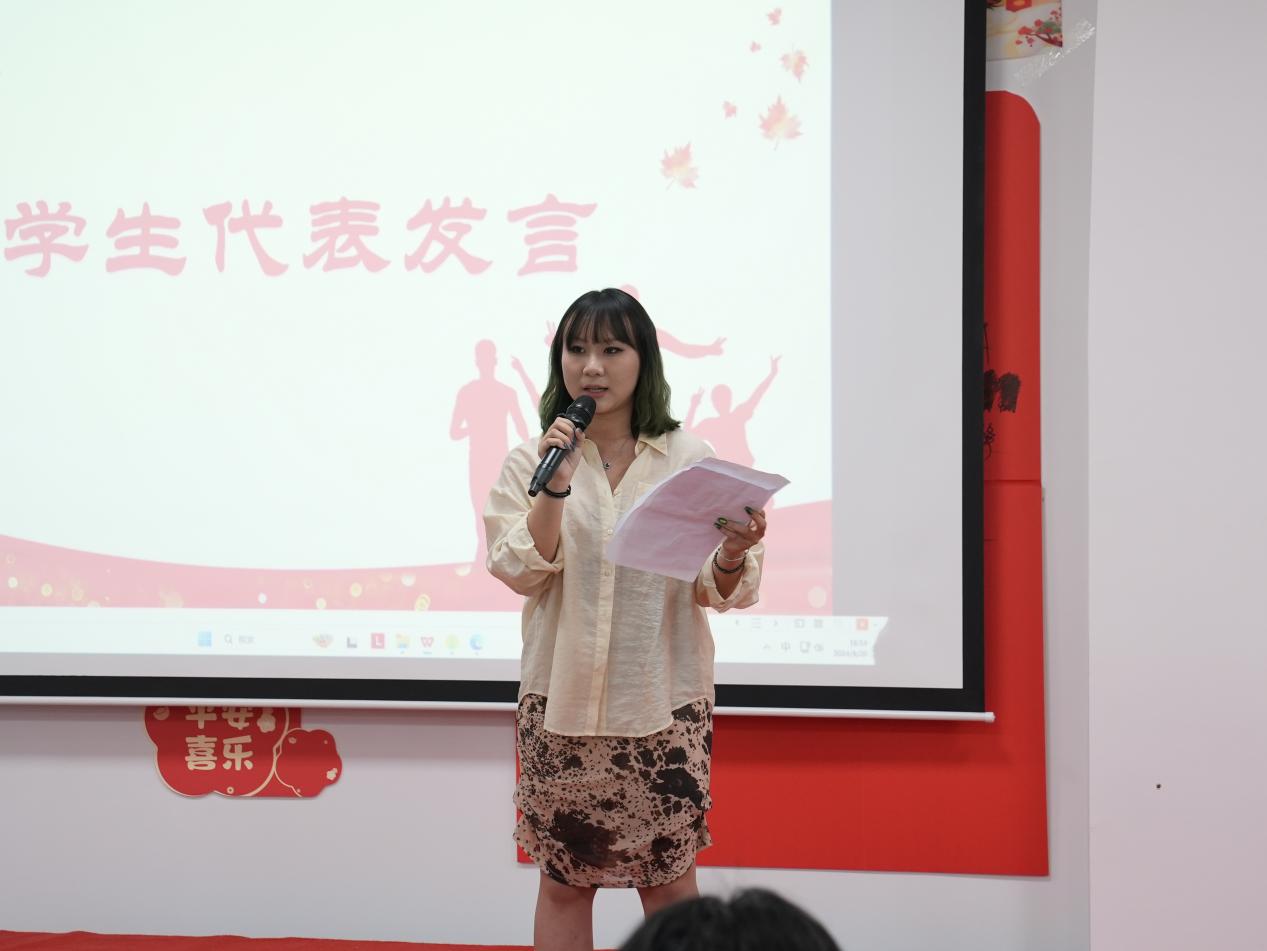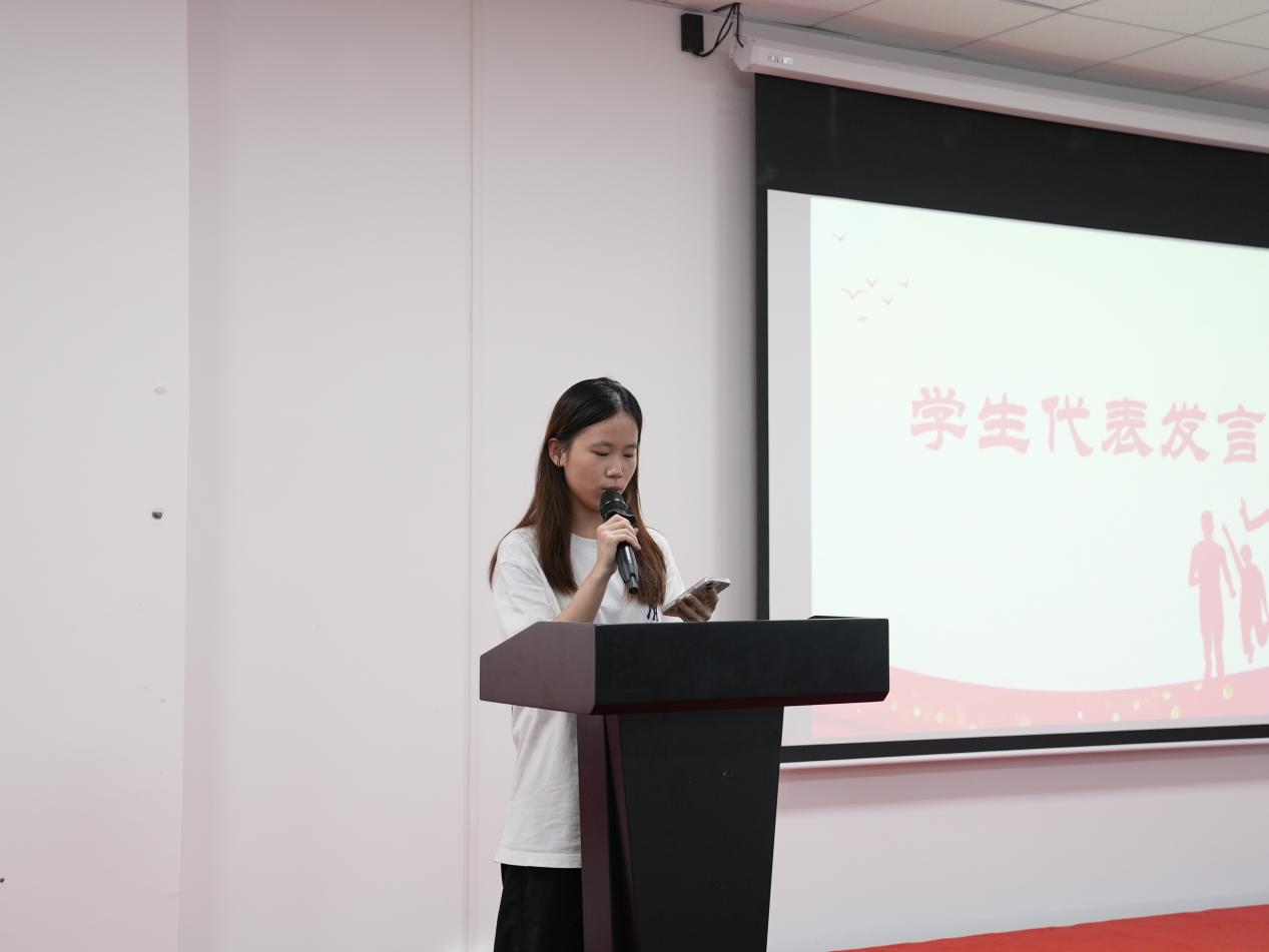 最后,来自21国贸专升本1班的徐诗晴同学上台发言,她激动地表示:“这次场景化实战课程让我们将理论知识与实践操作完美结合,让我们深刻体会到学习与实战的紧密联系。我要感谢学院和企业为我们提供这样的学习机会,让我们在真实的商业环境中锻炼自己,我相信这些经验将是我们未来职业生涯中宝贵的财富。”