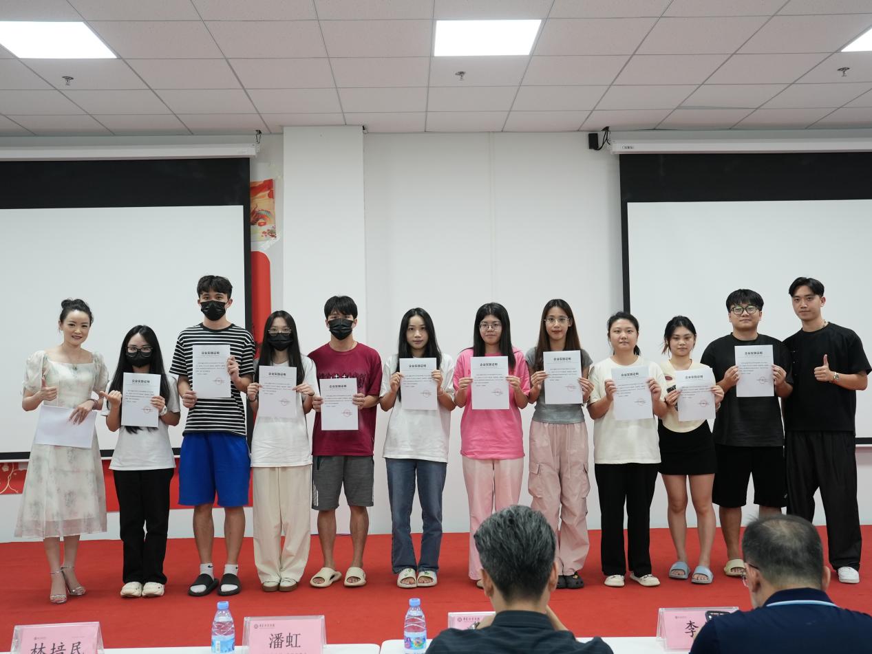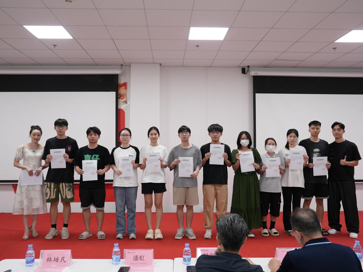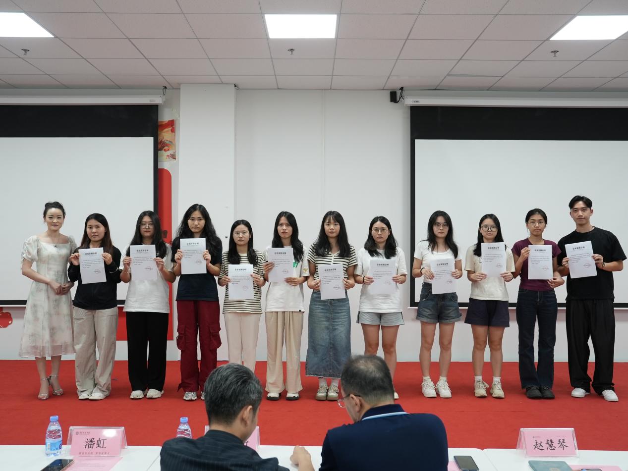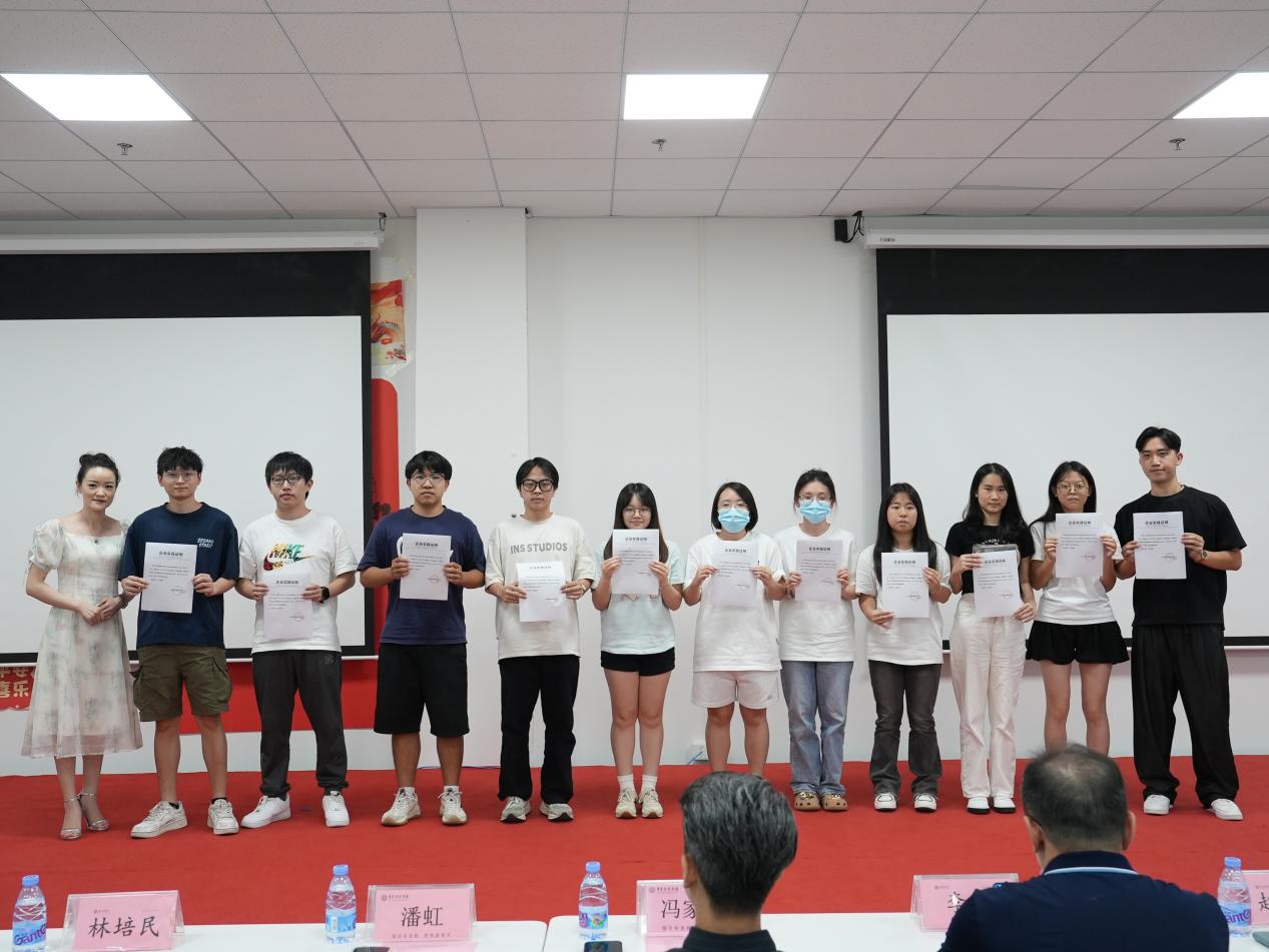 随后由数字经贸学院副院长李伟教授、广州桃花岛电商咨询有限公司CEO冯家裕总经理以及校企合作办公室主任潘虹以及跨境电商工作坊运营导师林培民为学生颁发企业实践证明,以表彰他们在实训过程中的优异表现。