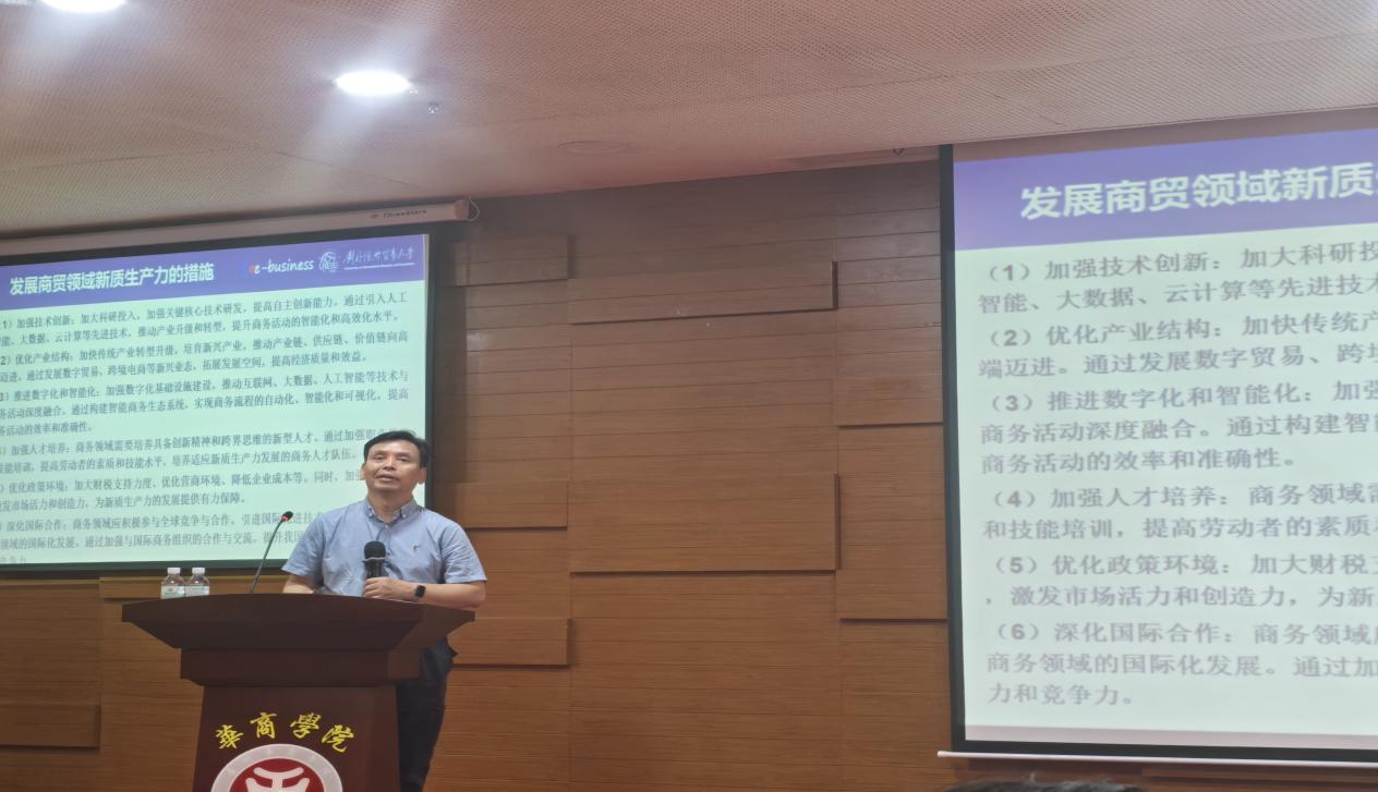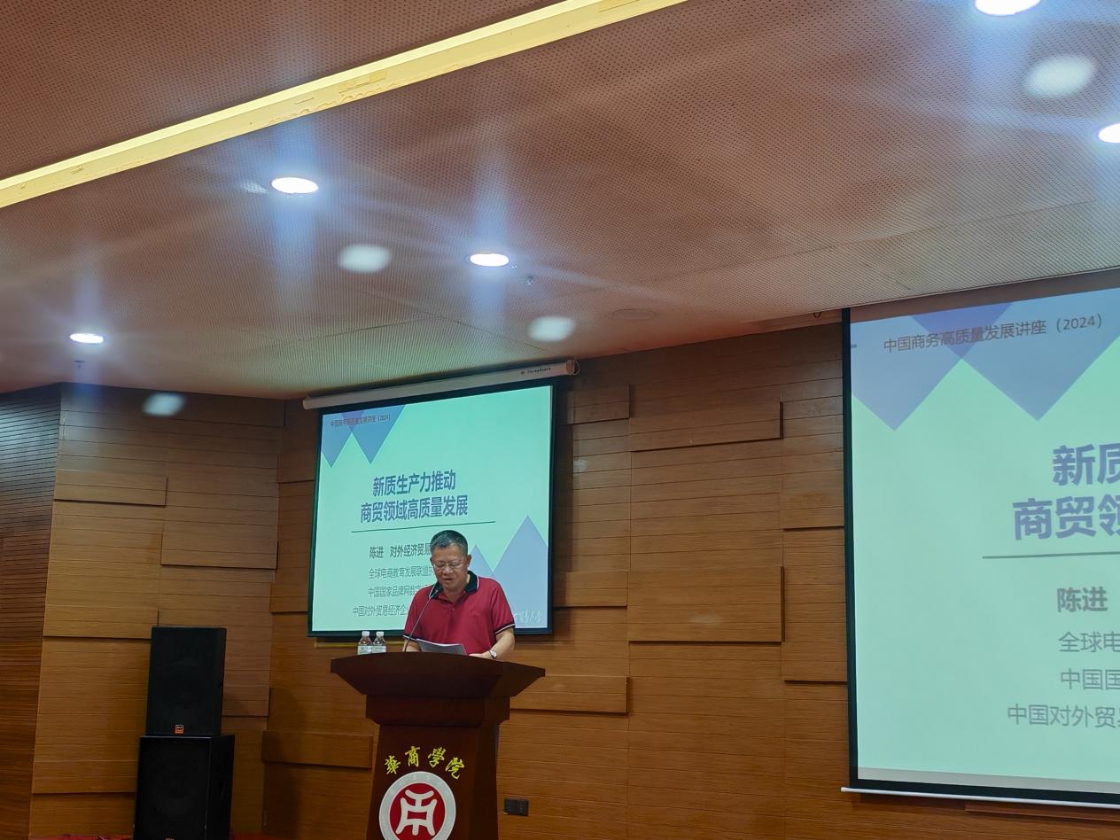 讲座伊始,数字经贸学院院长李广明教授首先代表学院表示热烈欢迎,并简要介绍了陈进教授的学术背景、研究成果以及其近年来在我国商贸高质量发展领域开展的系列工作。