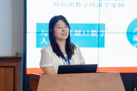 同场,赵慧琴主任以“数字经济产教融合型课程建设”为题作了分享,重点展示了我校利用AI技术赋能课程建设以及产教融合方面的创新探索。她介绍了如何通过数字人和智能体完成课程结构、内容、元素的搭建与梳理,有效提升教师教学效率和学生学习效果,并表示未来将结合学情,编写具有本校特色的数字经济教材,也展示了该课程与蓝源资本开展校企合作、与广东力拓合作录制AI数字人等。