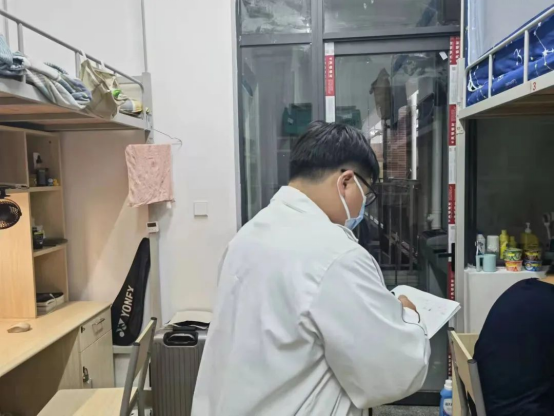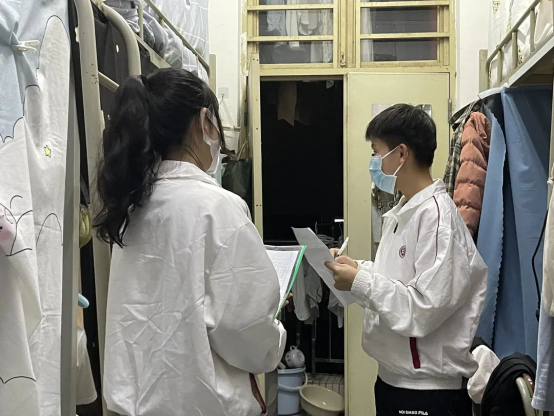 【工作人员走访、检查宿舍】