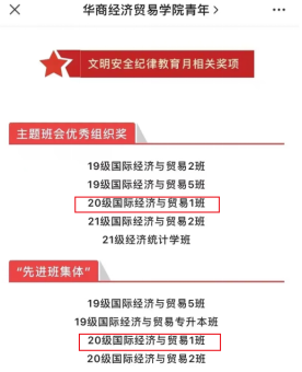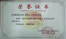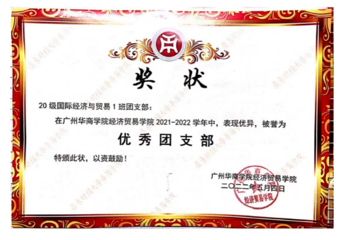 该团支部连续两年在学校和学院五四评优中荣获“优秀团支部”称号,所在班集体获2021-2022学年广州华商学院创先争优示范班、先进班集体。