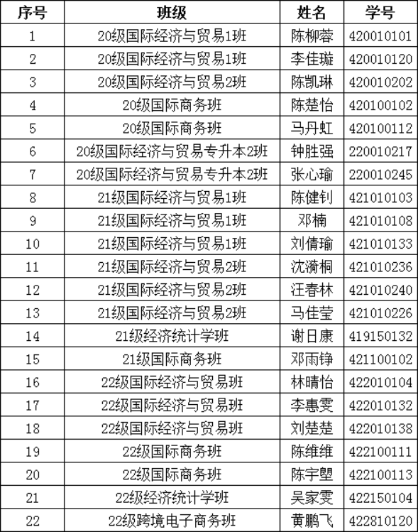 22级国际经济与贸易班