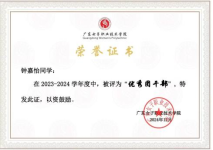 从专科到本科,从广东女子职业技术学院到广州华商学院,改变的是学习环境,不变的是对知识的渴望、对责任的坚守和对奉献的热忱。谈及一路走来的经历,钟嘉怡同学说:“每一份荣誉都是过往的见证,每一次选择都是未来的铺垫。只要有目标、肯坚持,平凡的脚步也能走出不平凡的旅程。”她始终相信,青春的意义在于奋斗,在于奉献。作为团支书,她以行动凝聚集体;作为学习者,她以勤奋追求卓越;作为帮扶者,他以善意温暖他人。在广州华商学院的校园里,她正以昂扬的姿态,在学业、工作、实践的多维舞台上不断突破,绽放属于自己的光彩。