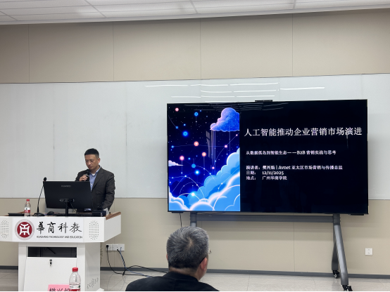 樊兴焰总监结合个人丰富的跨界工作经验,从数字化营销到人工智能应用的转变,深入剖析了人工智能在企业市场营销中的重要作用。樊总监指出,随着技术的不断进步,企业市场营销已不再是单纯的数字化营销,而是需要结合人工智能等新技术,实现更精准的营销策略。他详细介绍了人工智能在内容生成、客户画像、精准营销等方面的应用,强调了数据分析在营销决策中的关键作用。此外,樊总监还介绍了安富利公司的发展历程与全球业务布局,以企业实际案例阐释 AI 驱动的营销生态构建,为师生提供了鲜活的行业实践参考。