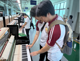 为深化产教融合,助力大四学子精准对接行业需求,近日,数字经贸学院国际商学系唐清萍老师和刘宁宁老师带领40余名数字经贸学院各专业大四学生,走进行业领军企业——广州珠江钢琴集团有限公司,开启一场“沉浸式”工厂参访与就业对接之旅。