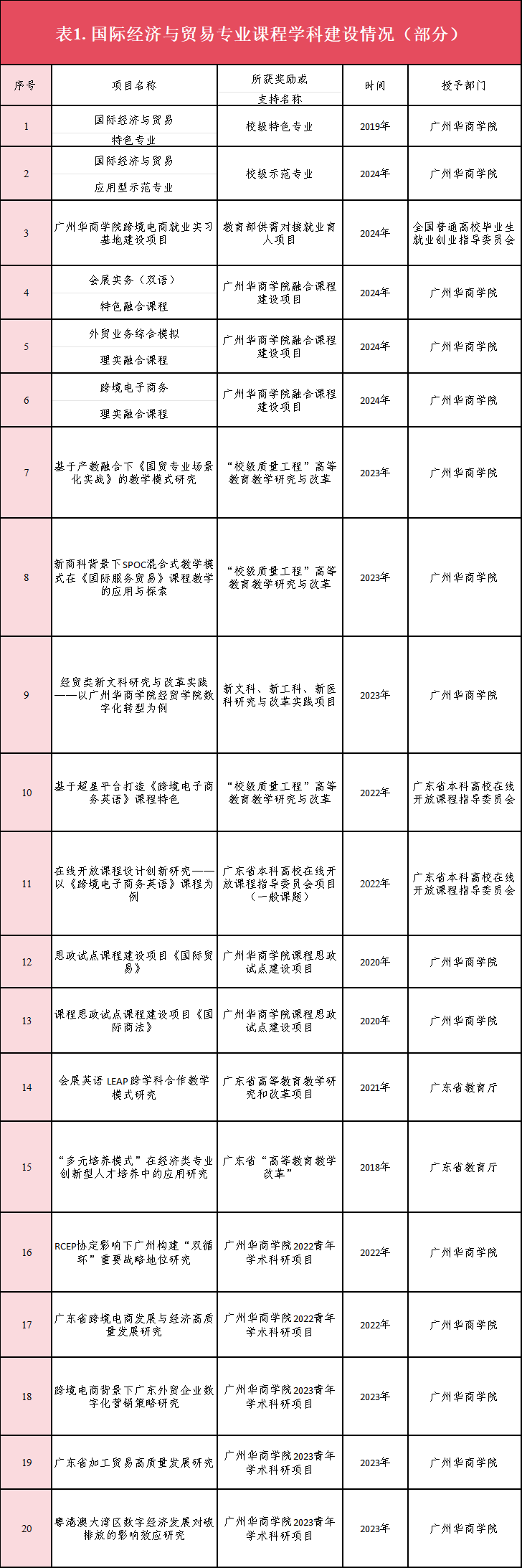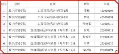 表6 广州华商学院国贸专业2025届优秀毕业生