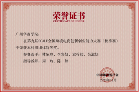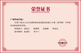 2022级国际经济与贸易专业林龙俏和杨璐滢同学以前五名的成绩获得广州华商学院第十届国际商业精英计划大赛十佳精英称号,由校长陈新滋院士为其颁发荣誉证书,也因此赢得到新加坡中汇学院学习的机会。