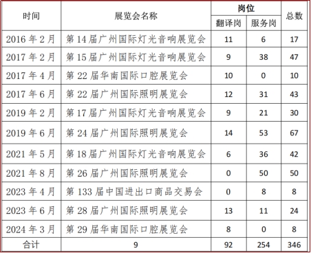 表3. 产教融合——《会展实务》(双语)课程国贸学生展会实践实习情况