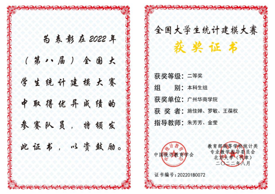本专业学生培养成效显著,具体表现为:①学生竞赛方面:2019-2025年,在相关的国家级、省级和校级相关竞赛中取得了较好的成效:2019.4-2020.3共获得5项奖励,其中4项省赛的奖励,1项国赛的奖励;2020年共获得4项目省赛奖励;2021.03-2021.12年共获得38项奖励,其中国赛二等奖1项,国赛三等奖3项,省赛一等奖10项,省赛二等奖9项,省赛三等奖15项,优胜奖3项,特别提名奖1项。2022年统计建模大赛中全国二等奖2项,全国三等奖4项,广东省一等奖8项、二等奖7项、三等奖10项,名列广东省各高校排名第三。正大杯市场调查大赛中全国赛三等奖 2项,广东省赛一等奖2 项,二等奖 1项,三等奖7项;2023年统计建模大赛广东省一等奖3项、二等奖1项、三等奖8项,正大杯市场调查大赛广东省赛一等奖 1项,二等奖5项,三等奖 11 项;2024年统计建模大赛广东省一等奖2项、二等奖3项、三等奖6项;正大杯市场调查大赛广东省赛二等奖6项,三等奖 17 项;2025年统计建模大赛全国三等奖2项,广东省一等奖4项,广东省二等奖4项,广东省三等奖3项;正大杯市场调查大赛广东省一等奖3项、二等奖5项,三等奖20项,其中4个队伍推荐到广东省大学生市场调查与分析大赛获奖。②学校综合测评获奖方面:2018-2019学年综合测评校优秀生有11人,占全校获奖人数的0.46%,有7人获得优秀班干部称号,18本经济统计学班获得优秀班集体荣誉; 2019-2020学年度优秀学生干部有9人,有24人获得优秀学生奖励和称号,18统计班获得优秀班集体荣誉;2020-2021学年度优秀学生干部有8人,有22人获得优秀学生奖励和称号。③学生就业方面:20届经济统计专业就业率达88.89%;21届经济统计专业就业率达92.11%;22届经济统计专业就业率达90.91%,大部分毕业生都能找到专业对口的岗位。
