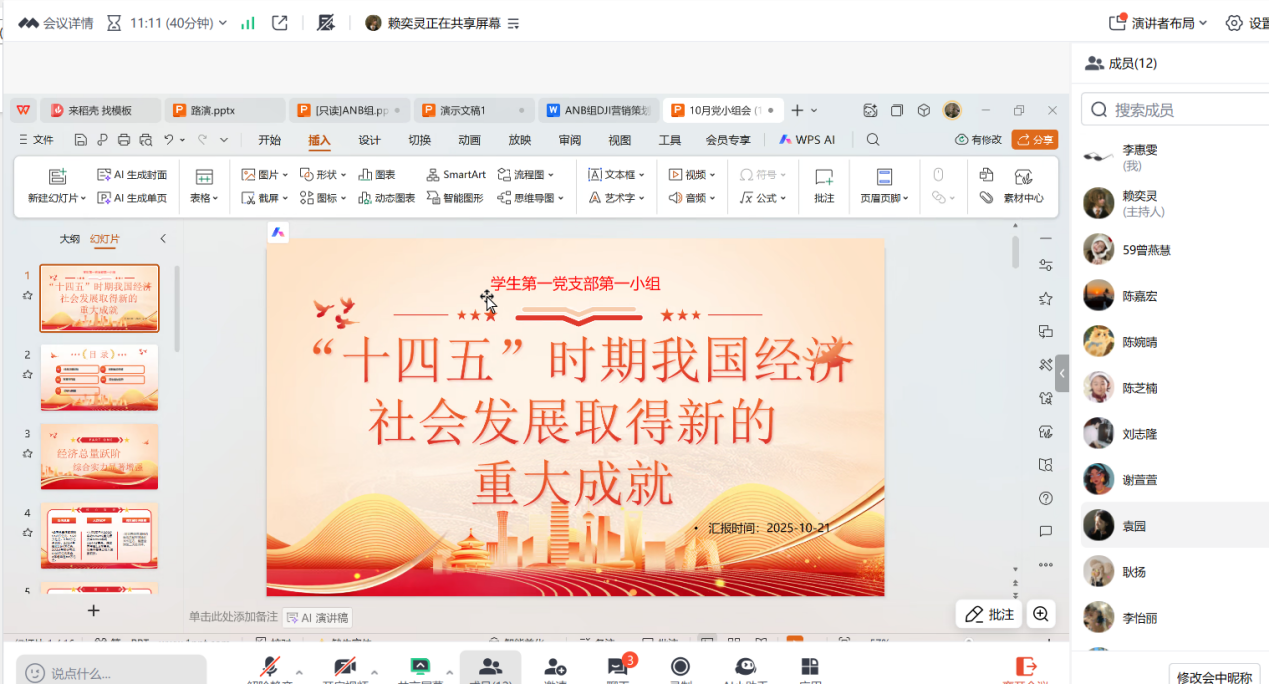数字经贸学院第一学生党支部第一党小组以“十四五”时期我国经济社会发展取得新的重大成就为主题召开了党小组会议,组织党小组成员学习国家在经济、创新、双循环、民生等领域的成果,加深对高质量发展的认知,增强家国认同感,激发成员将个人成长融入国家发展的责任感。