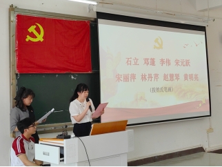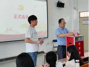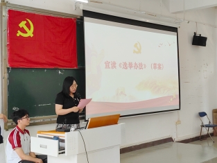由金莹同志宣读《中国共产党广州华商学院经济贸易学院委员会党员大会选举办法》(草案)。