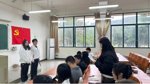 2023年12月1日下午,经济贸易学院学生第二党支部第二十七期预备党员转正通表大会在厚德楼C203召开。本次会议由覃杨辉同志主持。石立老师以及经济贸易学院学生第二党支部全体党员同志共同参加。
