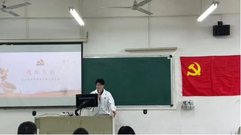 支部书记石立老师代表支委会报告考察情况:支委会认为陈楚怡等4名同志已基本符合一名中共正式党员条件,可以按期转为中共正式党员。