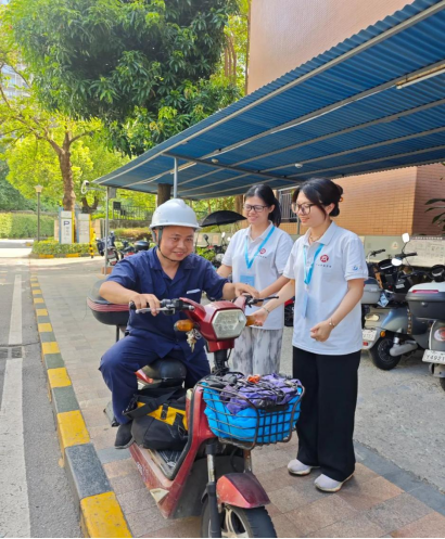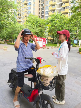为积极响应我市“百千万工程”号召,进一步提高新世界社区居民的电动车骑行安全意识,2024年7月9日经贸e起奋进队联合新世界社区开展“骑心协力,幸盔有你”电动车骑行带盔活动。