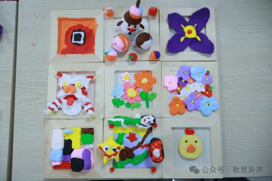 活动现场,社区活动室成了创意小天地。经贸e起奋进队的队员们教孩子揉圆球、搓长条这些基础技巧。接着引导做主题创作,不局限模板,比如给小动物加“背书包上学”场景,给海边风光添“远航小帆船” 。做“萌趣生灵”,教观察动物样子,捏出小猫耳朵;做“滨海风光”,教混颜色,做出海水层次。还让孩子互相看作品、分享想法,有趣创意就在粘土揉捏里出来了。