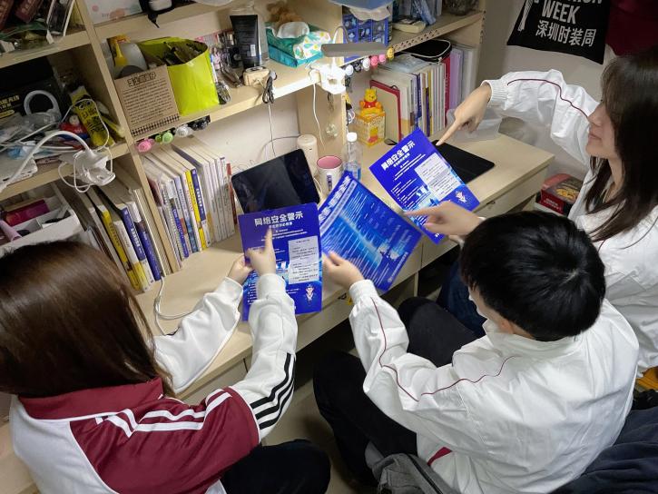 活动当天,广州校区志愿者在工作人员带领下进入学生宿舍走访宣讲,开展数贸知识普及,网络防诈宣传,同步发放宣传单等工作。