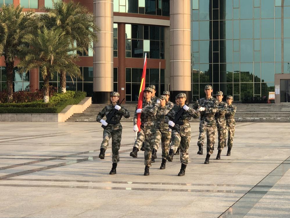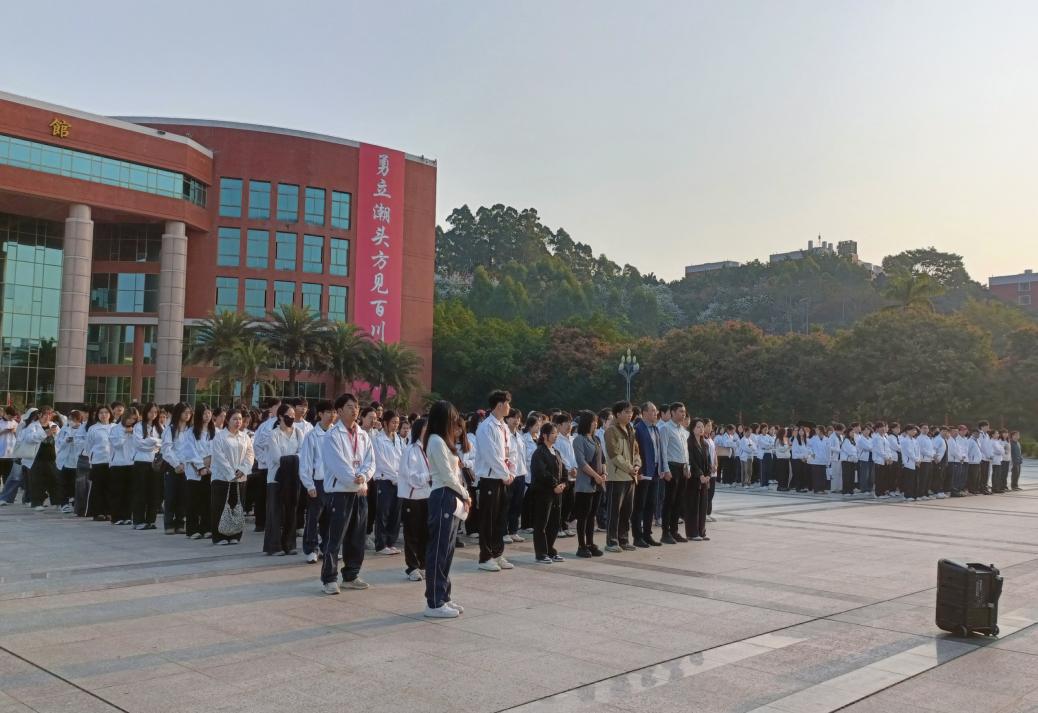 清晨,伴随着初升的朝阳,数字经贸学院的师生们齐聚升旗台前,共同见证这一庄严时刻。在全体师生的注目下,广州华商学院国旗护卫队迈着整齐的步伐,护送国旗入场。随着国歌的奏响,五星红旗冉冉升起,全体师生肃立,齐声高唱国歌,表达对祖国的热爱与敬意。