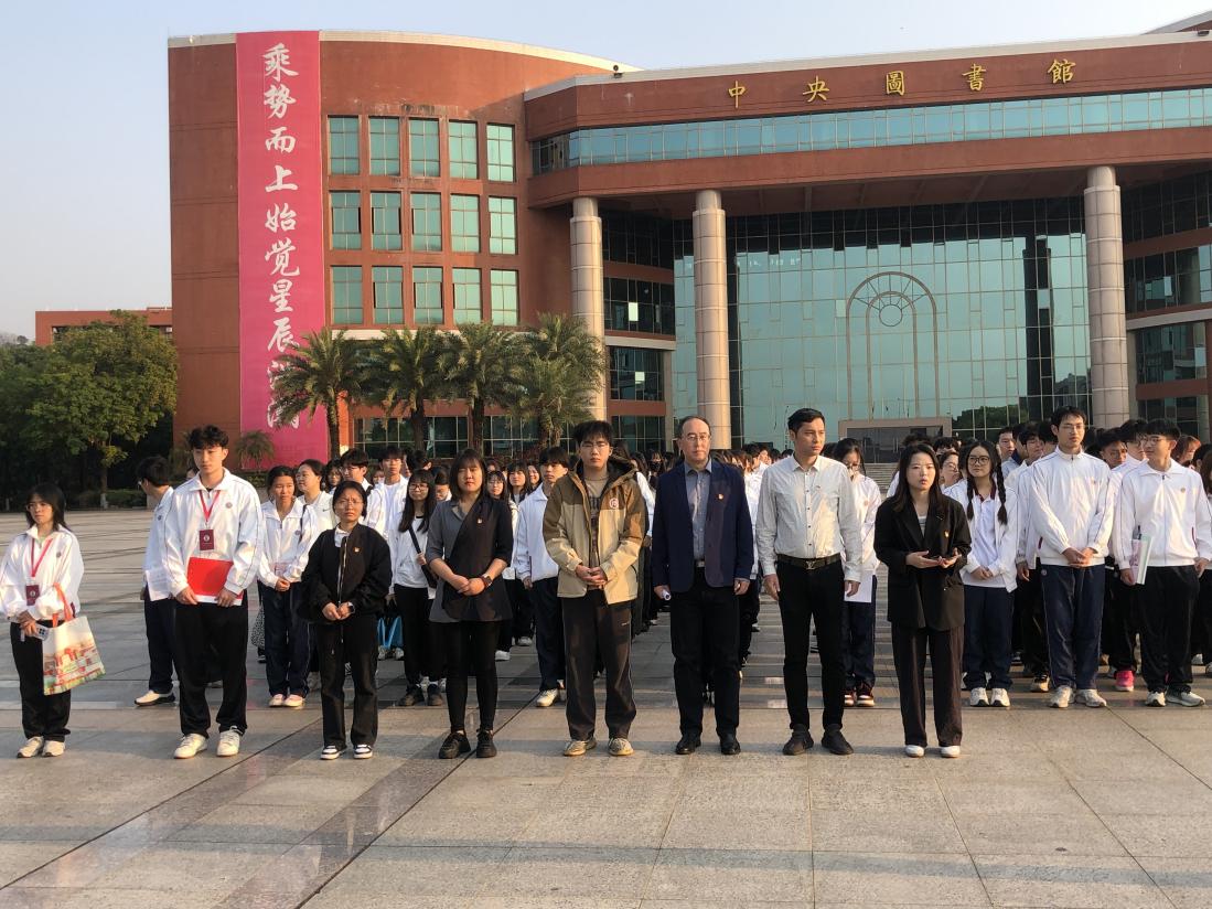 2025年3月24日上午7:30,广州华商学院数字经贸学院在广州校区中央图书馆的升旗台前举行了以“弘扬雷锋精神,在学风建设与评估中奋进”为主题的升旗仪式暨思政第一课活动。本次活动旨在弘扬雷锋精神,激励全院师生在学风建设和教学质量评估中奋勇前行,展现数字经贸学院的良好风貌。数字经贸学院党委书记李伟教授、学工办主任李鑫、学生第一党支部书记刘宁宁老师、团委副书记陈楚玲老师以及广州校区全体辅导员出席本次升旗仪式。本次活动由林晴怡同学主持。