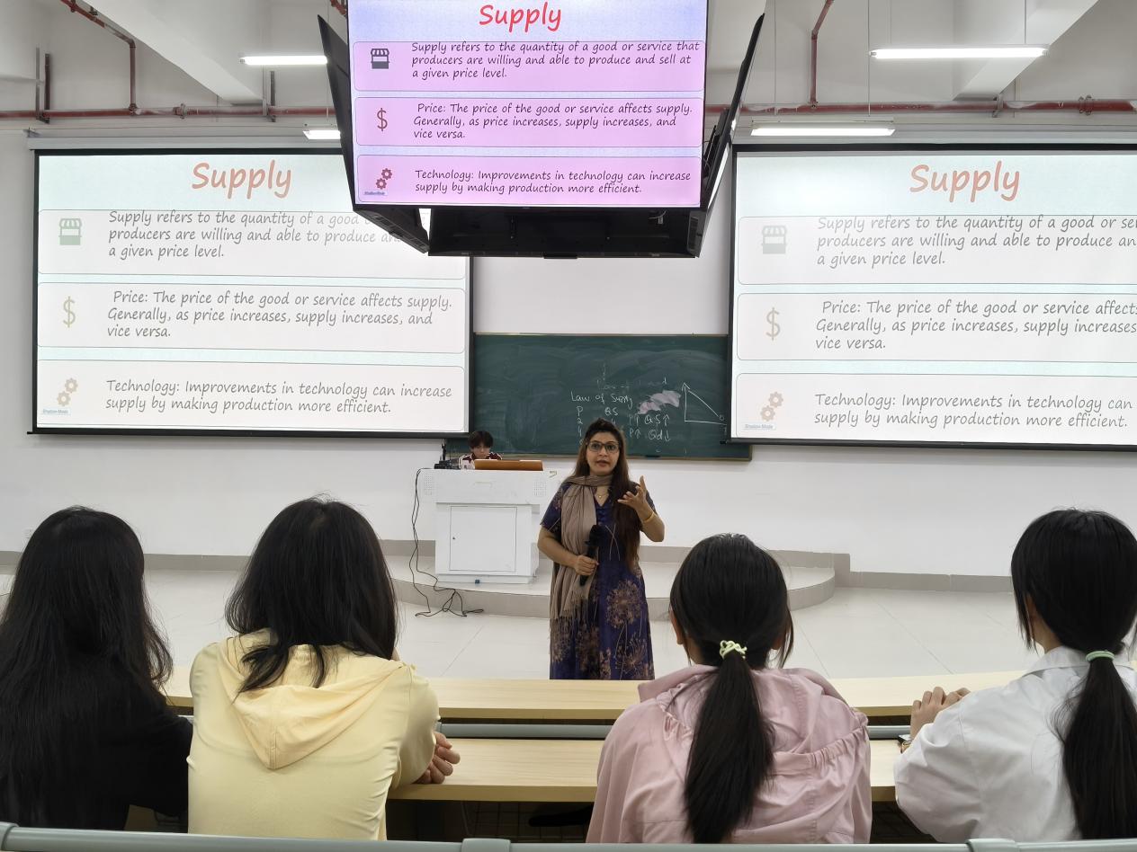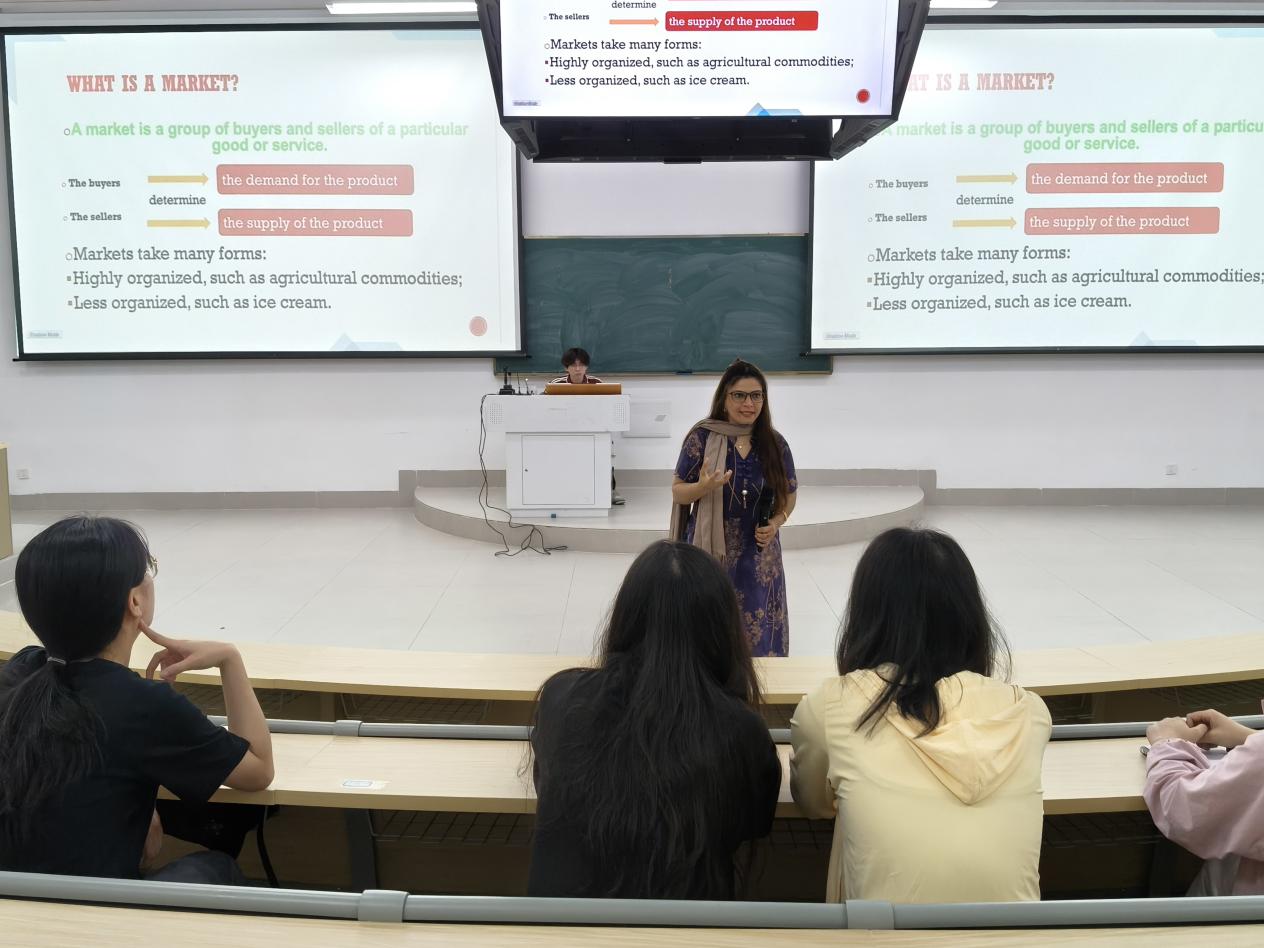 讲座最后,Aneela博士讲述政府可通过财政政策,在经济衰退时刺激需求,过热时抑制需求;利用货币政策调节货币供应量和信贷规模,影响投资与消费;实施产业政策引导资源配置,优化供给结构;还可进行价格管制、信息公开与区域协调等,从不同方面影响市场的供给与需求,进而促进市场平衡。