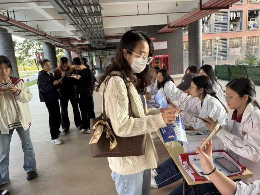 活动当天,广州校区志愿者在工作人员带领下进行摆摊宣传与趣味知识问答,完成宣传单发放以及参与知识问答的人员信息登记等工作。
