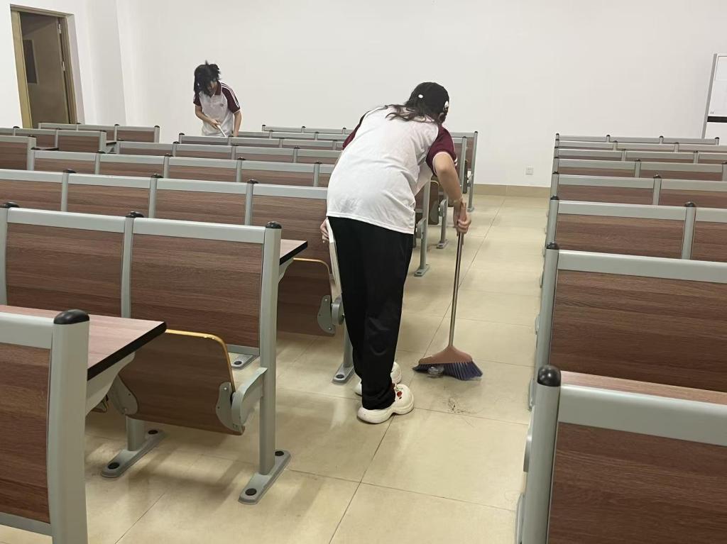 本次活动以常态化教室清洁为载体,围绕“立德树人”根本任务,深入贯彻党的二十大精神,将劳动教育与文明养成相结合。每周四下午,志愿者们准时集结于肇庆校区8楼四层,分组对教室地面、桌椅、黑板、门窗等区域进行全面清扫。尽管秋风微凉,但志愿者们热情不减,认真细致地完成每一项清洁任务,用双手营造出整洁明亮的环境。