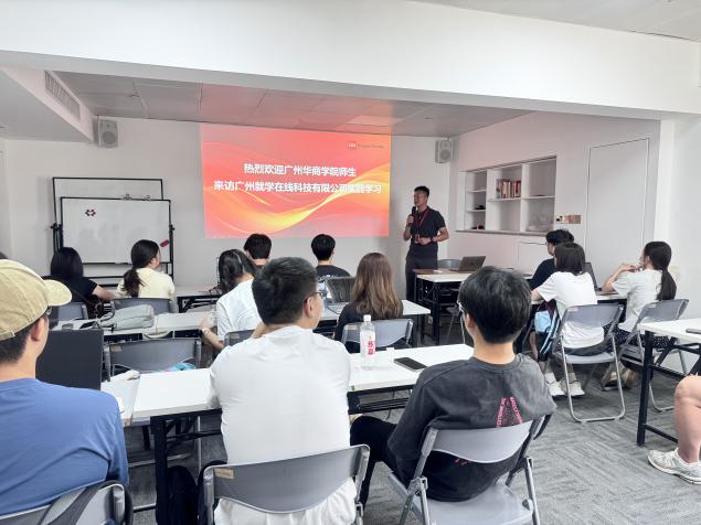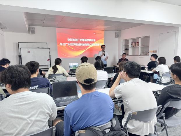 活动伊始,学生们参观了广州就学在线科技有限公司的办公环境,近距离观察企业日常运营流程。公司负责人详细介绍了其以数据驱动为核心的业务模式及发展历程,让学生直观感受到数据分析在现代商业决策中的关键作用。整洁高效的办公场景与前沿技术的应用案例,激发了同学们对数据分析行业的浓厚兴趣。