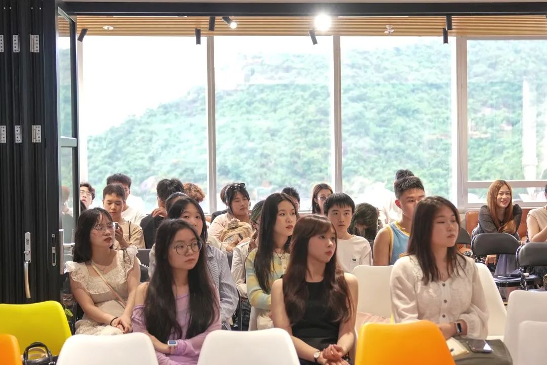 学生们在汇达大厦听梁嘉恩老师解读展会策划的英语表达体系,特别聚焦危机处理场景的范式,真实案例复盘提高了学生们对“语言精准度”与“应急反应力”在会展行业中的共生关系的意识。
