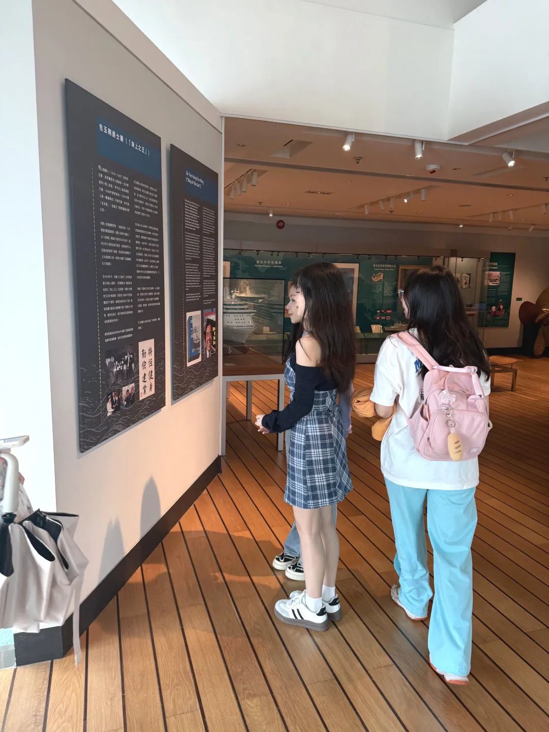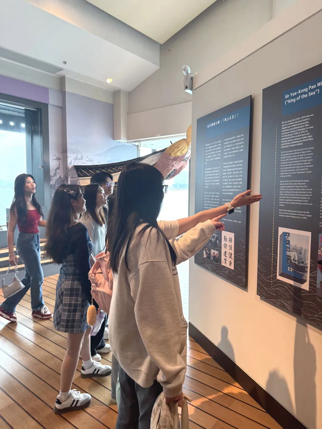 学生们根据班级分成两组赴香港海事博物馆参观,在历史航线图与货轮模型的叙事中,直观感受海运成本波动对全球供应链的深层影响。从鸦片贸易时期的港口雏形到现代集装箱港的效率革命,展品串联起“港口经济塑造城市产业”的逻辑链,以“海洋视角”重构了对“贸易驱动型经济”的认知框架。