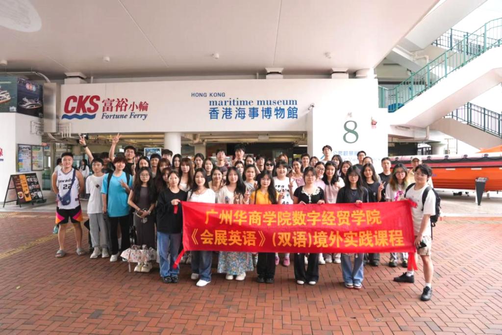 2025年4月25日到27日,广州华商学院数字经贸学院国际商务专业的2个班共75名《会展英语》课程的学生们,在国际交流与合作处的精心安排下,由2位任课教师:熊子珂老师和黎平海教授带领,分别赴香港开启了为期三天的沉浸式实践学习。本次境外实践课程具有多方面的目的与意义,它结合了专业特色和香港的区位优势,强化了学生们的专业英语应用能力, 深化了对会展行业的认知、拓展了国际视野与跨文化能力, 为今后服务粤港澳大湾区建设做好准备。此次活动不仅是《会展英语》课程的延伸,更是一次“专业能力+国际视野+职业素养”的综合实践。