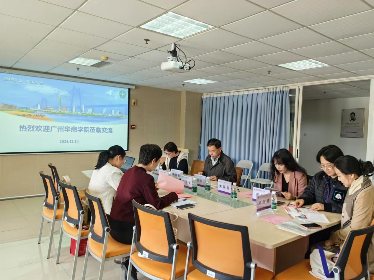 广州城市理工学院经济学院以黄瑞新副院长为首的团队,包括国际经济与贸易教研室副主任徐岑、专任教师徐苗、黄菲菲以及经济与统计专任教师邓雨婷,热情接待了来访的同仁。